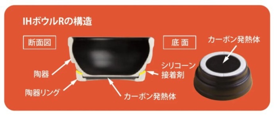 陶器リングで発熱体を保護し、IHボウルよりも高い蓄熱性が特徴です。